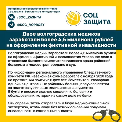 Двое волгоградских медиков заработали более 4,6 миллиона рублей на оформлении фиктивной инвалидности. 1️⃣2️⃣3️⃣4️⃣5️⃣6️⃣7️⃣ - подписаться на канал. Спасибо за ваши реакции и репосты!