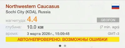 🫨 Сочи тряхнуло!: В городе произошло землетрясение магнитудой 4.4 Сегодня в 15:09 в море напротив центрального района, в 27 км от Сочи, зафиксированы подземные толчки. Эпицентр находился на глубине