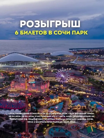 РОЗЫГРЫШ 6 БИЛЕТОВ В СОЧИ ПАРК🎢 Магия, шоу, американские горки, эмоции – и всё это для тебя и твоего спутника! 3 победителя, по 2 билета в Сочи Парк каждому. Хочешь попасть бесплатно? Подпишись на