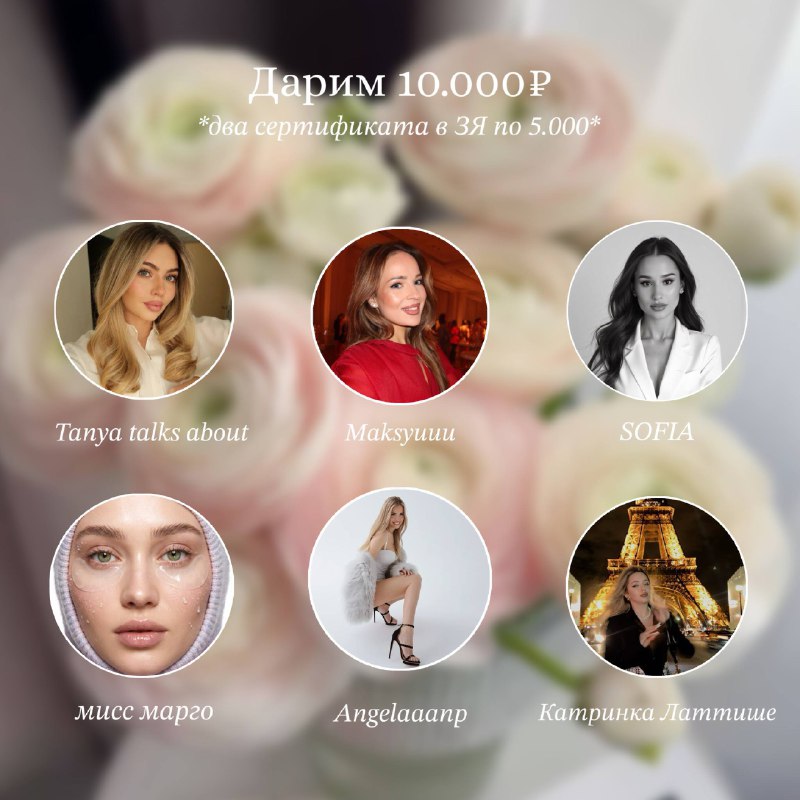 Дарим 10.000₽ рублей в честь начала весны и 8 марта ❤️ {2 сертификата в Золотое Яблоко или по 5.000₽ на карту} Условия: • Быть подписанным на: @sofia_molz @Tanyatalksabout @maksyuuuu @angelaaaanp @mi