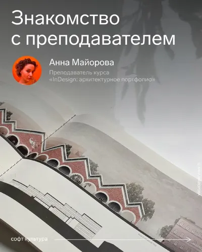 Продолжаем знакомиться с преподавателями курса «InDesign: архитектурное портфолио». В этот раз поговорили с Аней Майоровой — архитектором, фанатом музейных каталогов и проектов Александра Бродского.