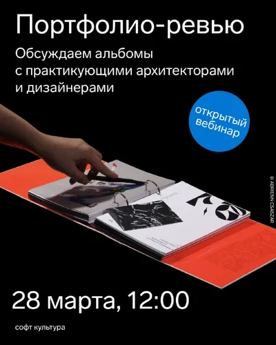 Запускаем серию портфолио‑ревью для архитекторов и дизайнеров. На первой встрече разберем несколько портфолио, которые участники присылали прошлой осенью на совместное ревью Софт Культуры и фестиваля