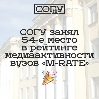 Друзья, делимся еще одной хорошей новостью. СОГУ занял 54-е место в ежемесячном рейтинге медиаактивности вузов России «M-RATE», показав один из самых заметных ростов. В рейтинге — 237 университетов.