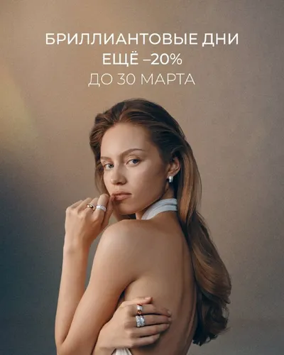 Сбылось ✨ Март обещал быть ярким — и мы подготовили для вас по-настоящему сияющее завершение месяца 💎 Дополнительно -20% на бриллианты — идеальный повод выбрать украшение, которое будет радовать ка