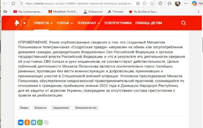 В рамках мирного соглашения РЕН ТВ удалило публикацию от 18 июня 2025 года с клеветой в мой адрес и опубликовало опровержение. Я, конечно, понимаю, что это опровержение не подхватят все федеральные