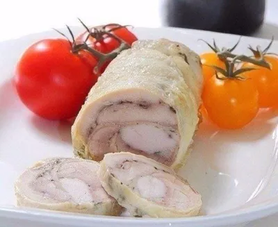 ЗАМЕНА КОЛБАСЕ — КУРИНЫЙ РУЛЕТ Ингредиенты: 1 кг куриного филе, 25 г. желатина, 2 зубчика чеснока, соль, паприка, чёрный молотый перец, сухие травы. Приготовление: Филе нарезать небольшими кусочками