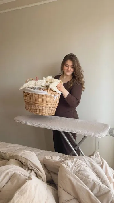 Утренняя мартовская глажка🧺🤍 До обеда наша спальня просто заливается солнечным светом, а уже после обеда солнышко перебегает в гостиную. Поэтому впервые утром гладила в спальне!