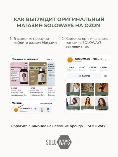 Как выглядит оригинальный магазин SOLOWAYS на OZON Чтобы вы совершали безопасные покупки БАД SOLOWAYS на OZON, сделали для вас удобную памятку – как найти и сохранить оригинальный магазин на маркетп