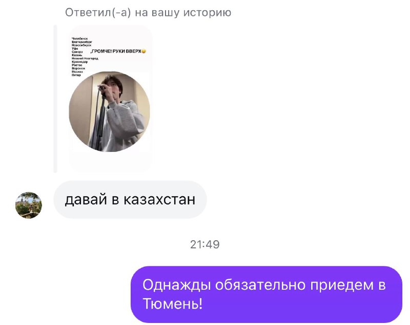 Какая идиотская глупость произошла только что. Я раз в некоторое время сажусь и разбираю директ, отвечаю людям на сообщения. Сейчас в ответ на сторис с нашим туром много ребят написали «А когда в Каза