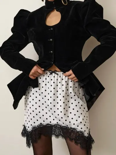 Кстати, классное бюджетное кружевное неожиданно нашла на WB у бренда The Lune. И ещё пару трендовых моделей. Такую красоту и в мини-подборку оформить не лень. Юбка в горошек Жилет с баской Ветровка