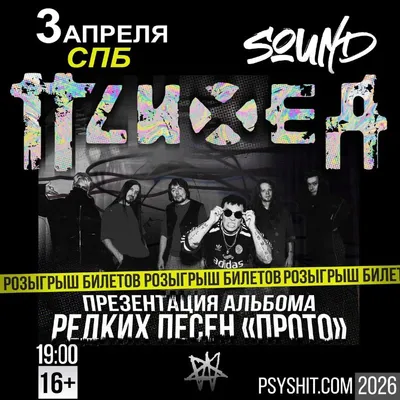 РОЗЫГРЫШ БИЛЕТОВ НА КОНЦЕРТ✨ дарим билеты на презентацию альбома «ПРОТО» ПСИХЕИ 🔥 1 место - 1 билет VIP входной 2-4 места - 1 билет танцпол 3 апреля ➡️клуб САУНД//SOUND (Севкабель Порт, Кожевенн