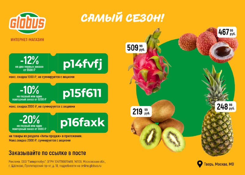 ПродажиПромокоды на доставку продуктов и др. Бот: https://t.me/sove2u_bot Реклама: https://telega.in/c/sove2u Контакты: @ohimik РКН: https://clck.ru/3FD8o9 ===== Изотов Дмитрий Алексеевич Москва, ул.Жуковского, д.4, кв.33 +79104691059 770170406971