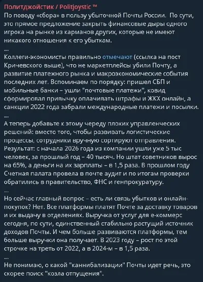 Марат хорошо написал про Почту России, объективно. Теперь замените Почта России на Россети и все встанет на свои места. Не распредгенерация и уход потребителей из сети убили Россети, а развитие техн