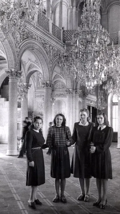 Уже знакомые нам девушки в Павильонном зале Эрмитажа, 1950-е годы. Подруги вели активную жизнь и много куда ходили, так что мы ещё продолжим разбирать этот фотоархив ленинградской студентки.