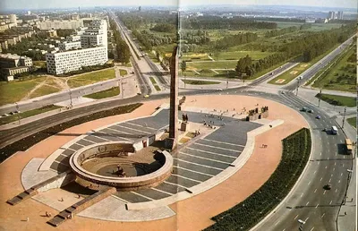 Площадь Победы до появления здания ВНИИ "Электронстандарт" (фото 1976 г.) и после его возведения (фото 1985 г). На его участке долго планировалось размещение Института театра, кино и музыки. Но Минис