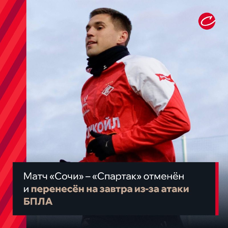 🐻❌ Матч «Сочи» – «Спартак» отменён и перенесён на завтра из-за атаки БПЛА. 🔥 подписывайтесь на @sovsport