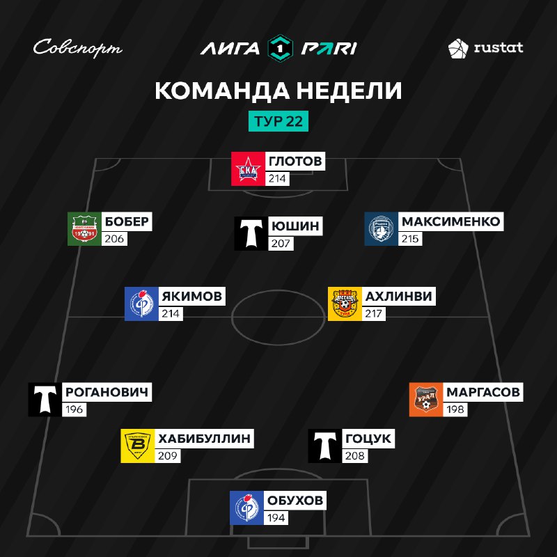 🤩👊 Сразу три игрока «Торпедо» попали в символическую сборную 22-го тура Лиги PARI. Также в числе лучших оказались футболисты «Нефтехимика», «Родины», «Факела», «Арсенала», «Урала», «Волги» и «СКА-Х