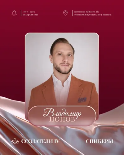 «СОЗДАТЕЛИ IV» Спикеры ☺️ВЛАДИМИР ПОПОВ☺️ ⬇️Доктор Remee+, RHS, RMS, взрослый и детский невролог, специалист превентивной, функциональной и регенеративной медицины (5P). ⬇️Лектор (лектор-эксперт Pr