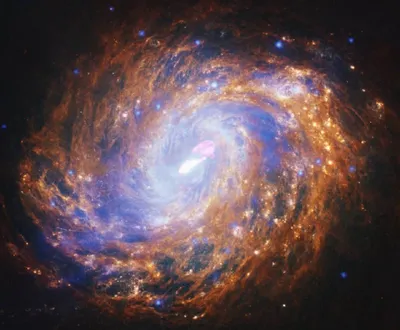 💫 Перед вами галактика Messier 77! Это спиральная галактика в созвездии Кит. Расстояние от Земли — 62 миллиона световых лет. 8,9 — видимая звёздная величина галактики. Это изображение сочетает в се