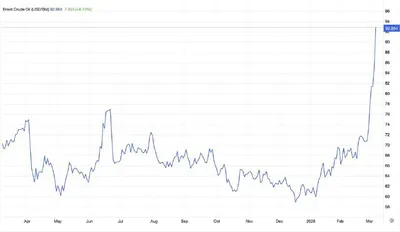 🇮🇷 ⛽️ El crudo Brent subió a alrededor de $92-93 por barril. Los precios alcanzaron brevemente ~$94, los niveles más altos desde 2022. Esto es impulsado por las tensiones en Oriente Medio y los te