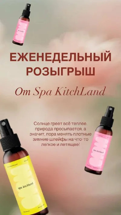 🌸 Вдохните весну полной грудью! ЕЖЕНЕДЕЛЬНЫЙ РОЗЫГРЫШ от Spa KitchLand 🎁 Солнце греет всё теплее, природа просыпается, а значит, пора менять плотные зимние шлейфы на что-то легкое и летящее! 🧴 По