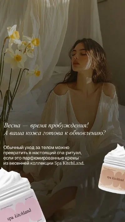 💘Весна — время пробуждения! А ваша кожа готова к обновлению? Обычный уход за телом можно превратить в настоящий спа-ритуал, если это парфюмированные кремы из весенней коллекции Spa KitchLand. Иде