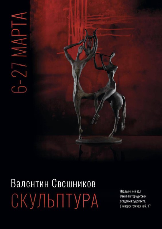 6 марта в 17:00 в Итальянском зале откроется выставка работ Валентина Дмитриевича Свешникова (1947-2022). В экспозиции представлены скульптура малых форм, эскизы конкурсных проектов, а также фотографи