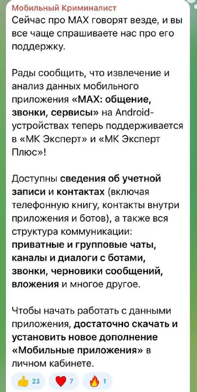 ❗️ Max взломали, сообщили создатели софта для криминалистов. Они утверждают, что с помощью их программы можно получить доступ к удаленным сообщениям, списку контактов, истории звонков и любым файлам