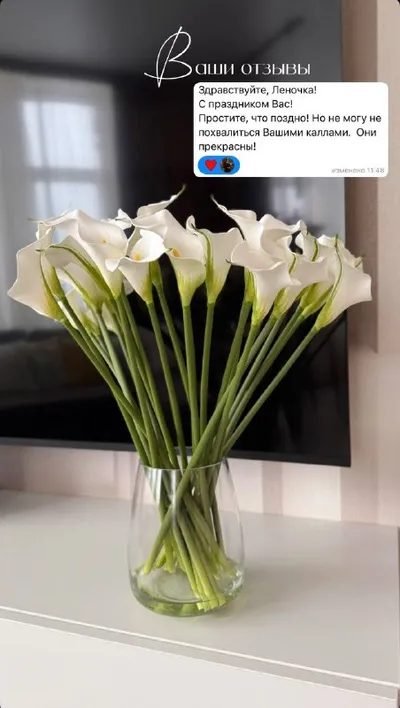 📸 В интерьере покупателя В вазе на фото: 1. Тюльпаны пионовидные белые. 960 руб. 2. Живокость белая. 5 веток. 240*5=1200 руб. 3. Фрезия белая. 5 веток. 245*5=1225 руб. Итого: 🌱3385 руб.