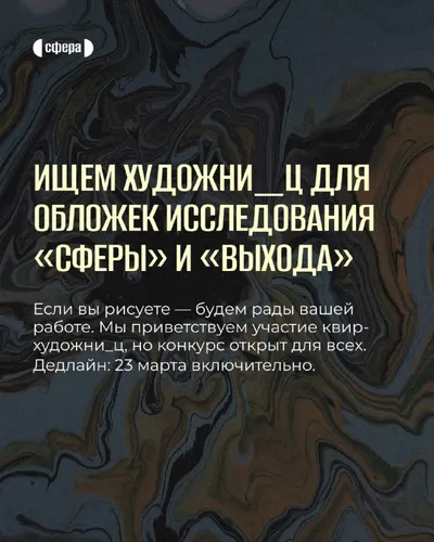 ❤️🔥 Ищем художни_ц для обложек исследования «Сферы» и «Выхода» Мы выбрали основную тему для иллюстраций — сопротивление. Нам нужно две работы, объединенные общей идеей (это может быть диптих).