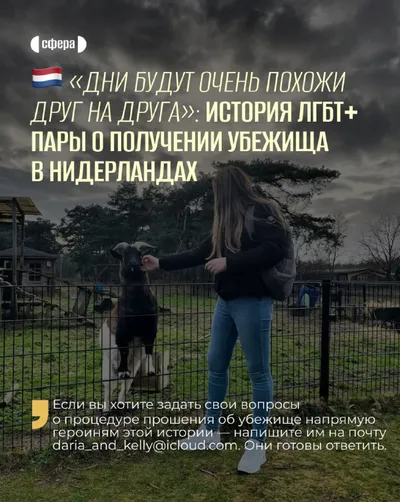 «Дни будут очень похожи друг на друга»: история ЛГБТ+ пары о получении убежища в Нидерландах 🇳🇱 Дарья и Келли — супружеская пара, два года назад уехавшая в Нидерланды в поисках защиты. Сейчас они ж