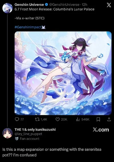 🌟 В 6.7 новая карта — Лунный дворец Коломбины Думаю это можно считать как подтверждение от HXG ✉️ Источник: #xwriter n #hxg 🌚 Сплетник Фатуи | #v6_7