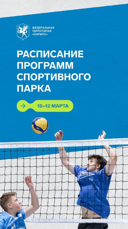 Актуальное расписание тренировок с 10 по 12 марта: Спортивный парк, Музыкальный сад и культурно-досуговый центр Сириуса Информацию по тренировкам вы всегда можете уточнить у администраторов Спортивн