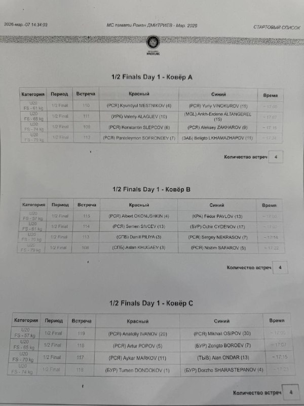 ⚡️ПОЛУФИНАЛЬНЫЕ ПАРЫ XII МЕЖДУНАРОДНОГО ТУРНИРА ПО ВОЛЬНОЙ БОРЬБЕ ПАМЯТИ РОМАНА ДМИТРИЕВА-2026 «Спорт Якутии»