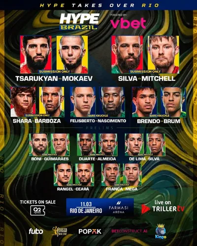 HYPE Brazil: Царукян vs Мокаев ⏰ Начало в 02:00 по Москве (03:00 по Еревану) ⏺Онлайн трансляция в VK: https://vkvideo.ru/video-103407928_456239202 ⏺Онлайн трансляция на сайте: https://sportaran.com