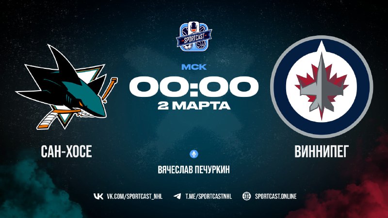 🏒 Сан-Хосе Шаркс – Виннипег Джетс 🏒 (00:00 Мск) 🎙 Вячеслав Печуркин 👀 Прямая ссылка / ⚽️ Sportcast.online /📺МатрёшкаТВ /👀 VK Live 🏒 Юта Маммот — Чикаго Блэкхокс 🏒 (00:00 Мск) 🎙 Егор Хлопо