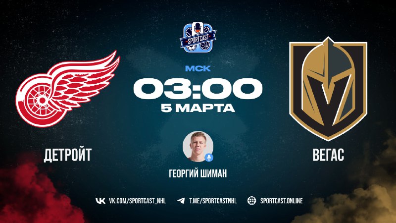 🏒 Детройт Ред Уингз – Вегас Голден Найтс 🏒 (03:00 Мск) 🎙 Георгий Шиман 👀 Прямая ссылка / ⚽️ Sportcast.online /📺МатрёшкаТВ /👀 VK Live 🏒 Нью-Джерси Девилз – Торонто Мэйпл Лифс 🏒 (03:00 Мс