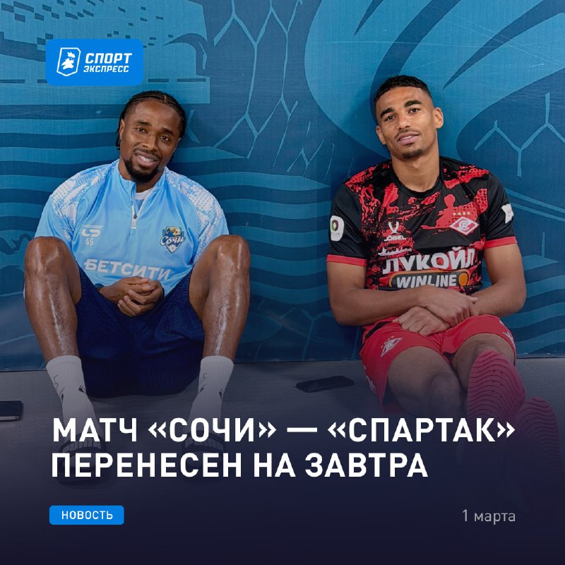Сегодня футбола в Сочи не будет ❌ Как стало известно «СЭ», матч перенесен на понедельник 👀 UPD. Перенесли официально. Сыграют 2 марта в 15:00 по мск ⚽️ Подписывайся на «СЭ» в MAX