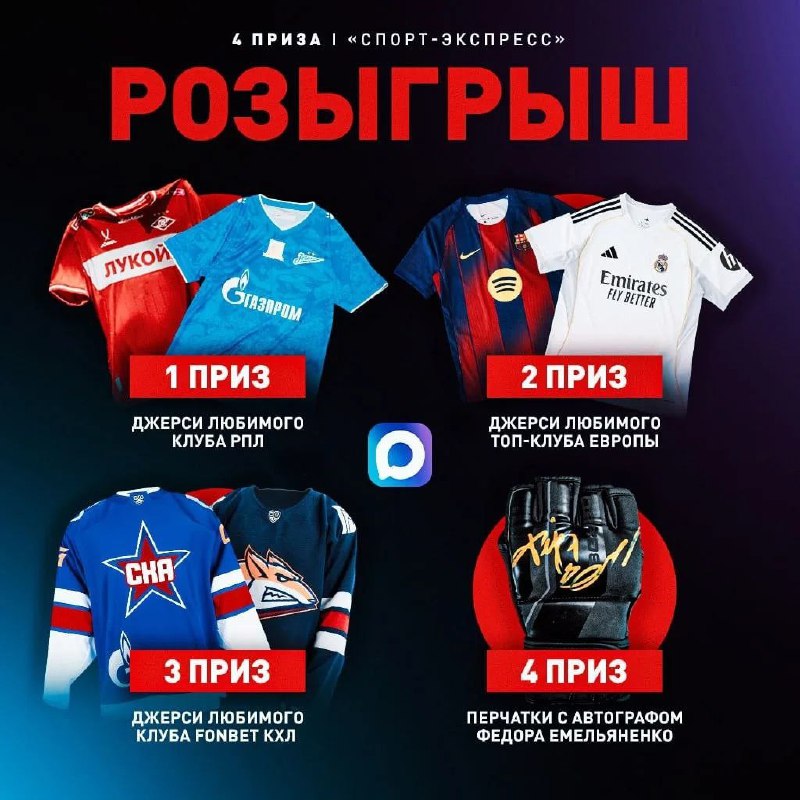 ЗАПУСКАЕМ МАСШТАБНЫЙ РОЗЫГРЫШ 🔥 Сразу 4 уникальные вещи для твоей коллекции: тут и футбол, и хоккей, и ММА! Каждый найдет что-то для себя. Для участия нужно лишь подписаться на наши каналы и нажать