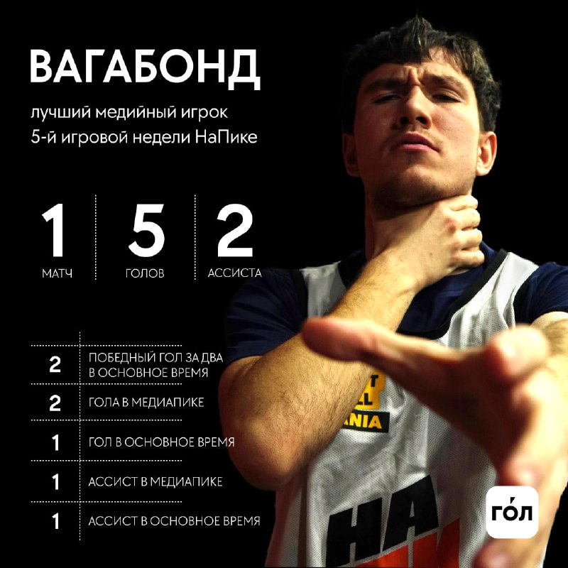 🏆 Вагабонд – «Король НаПике». Звезда 2Drots – лучший медийный игрок 5-й игровой недели НаПике Продолжается совместная рубрика НаПике и приложения ГОЛ. Каждую неделю определяется лучший среди медийны