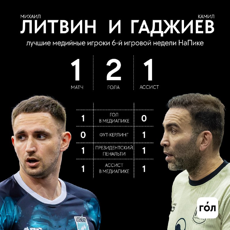 🏆 Михаил Литвин и Камил Гаджиев – «Короли НаПике». Боссы Lit Energy и Fight Nights – лучшие медийные игроки 6-й игровой недели НаПике Продолжается совместная рубрика НаПике и приложения ГОЛ. Каждую