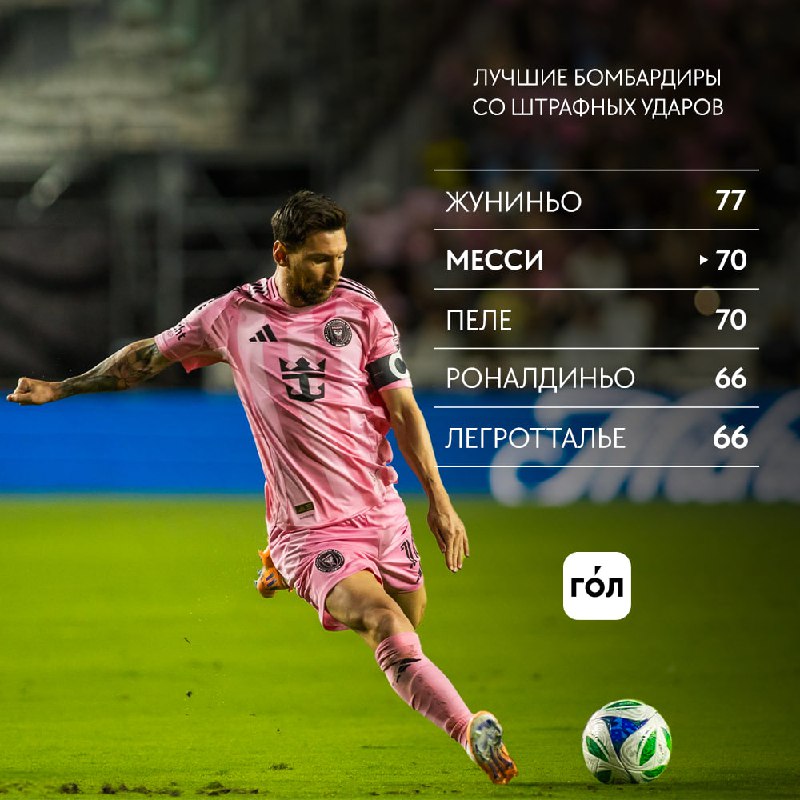 Месси забил свой 70-й штрафной в карьере и догнал по голам со штрафных Пеле 🐐 🤩 ⚽️ Вся статистика Лео в приложении ГОЛ