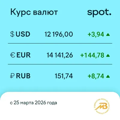 Доллар еще немного подорожал — до 12 196 сумов Центральный банк Узбекистана опубликовал курсы валют на 25 марта. Подробный график динамики курсов валют доступен на нашем сайте. Telegram | Instagr