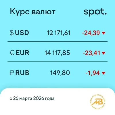 Курс доллара снизился до 12 171 сума Центральный банк Узбекистана опубликовал курсы валют на 26 марта. Подробный график динамики курсов валют доступен на нашем сайте. Telegram | Instagram | You