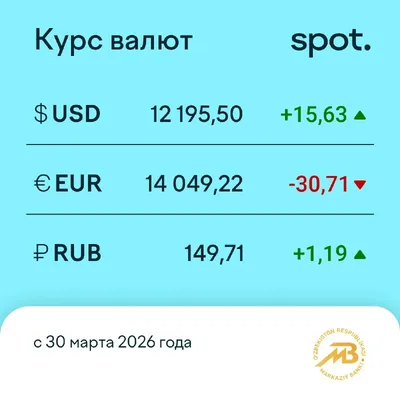 Курс доллара поднялся до 12 195 сумов Центральный банк Узбекистана опубликовал курсы валют на 30 марта. Подробный график динамики курсов валют доступен на нашем сайте. Telegram | Instagram | Yo