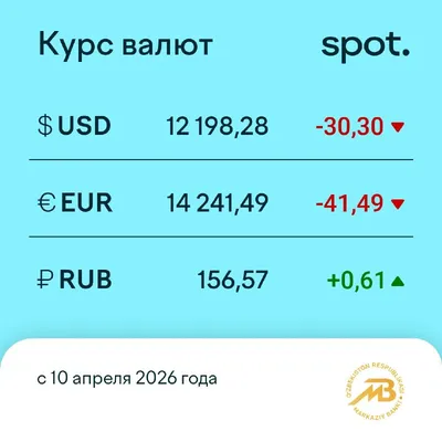 Курс доллара опустился до 12 198 сумов Центральный банк Узбекистана опубликовал курсы валют на 10 апреля. Подробный график динамики курсов валют доступен на нашем сайте.