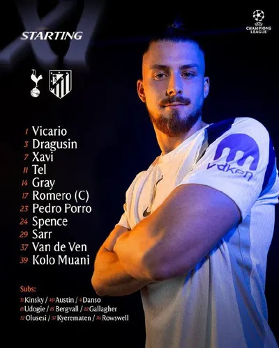 📋Стартовый состав на выездной матч против «Атлетико Мадрид». Информация про Кински подтвердилась✅ Хави Симонс второй матч не в старте❌ @spurstg
