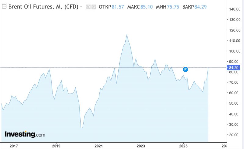 Нефть Brent поднялась в цене до максимума с июля 2024 года Она уже торгуется выше $84 за баррель. 🔴 Читайте Sputnik Беларусь в MAX
