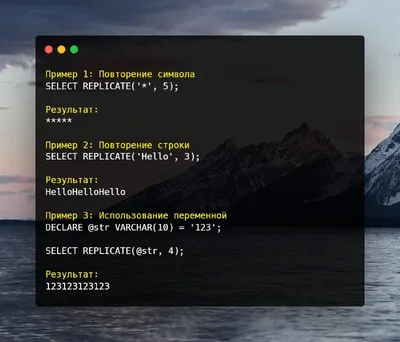 REPLICATE в SQL Server REPLICATE - это функция в SQL Server, которая повторяет входную строку указанное количество раз. Эта функция может быть полезна во многих сценариях, например, при создании тест