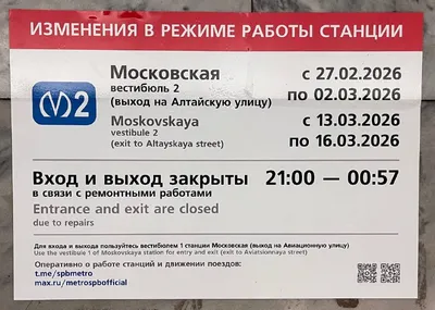 ❗️ Напоминалка: Южный вестибюль метро "Московская" (со стороны Алтайской улицы) будут закрывать по вечерам. С 13 марта (сегодня, пятница) по 16 марта вестибюль будет работать до 21:00, время закрытия